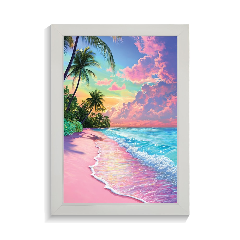 تابلو منظره طرح ساحل صورتی کد PF-22069